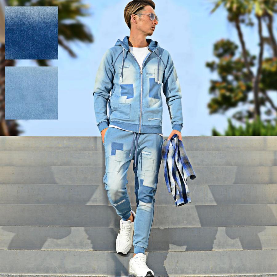 セットアップ メンズ ジャージ 上下 デニム スウェット パッチワーク おしゃれジャージ 春 ちょいワル メンズファッション LUXE/R ラグジュ 再入荷