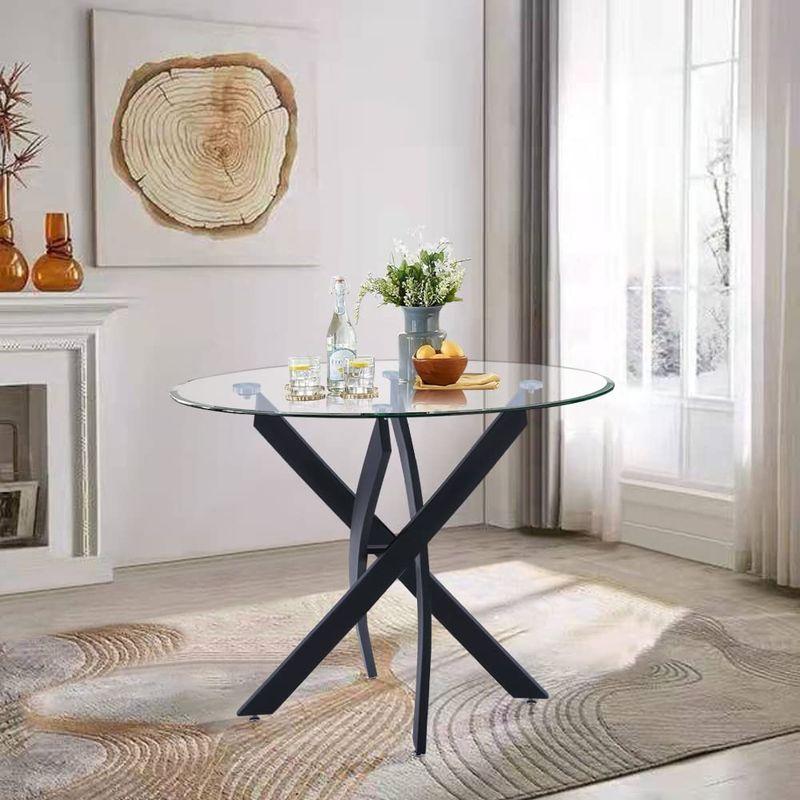 ・広々とした高品質のテーブルトップ:8mm厚の透明ガラステーブルトップとクロームの連動したモダンスタイルの脚で、当社のガラスラウンドテーブルは、モダンでスタイリッシュなインダストリアルスタイルでダイニングスペースに明るく広々とした感じを作成します。