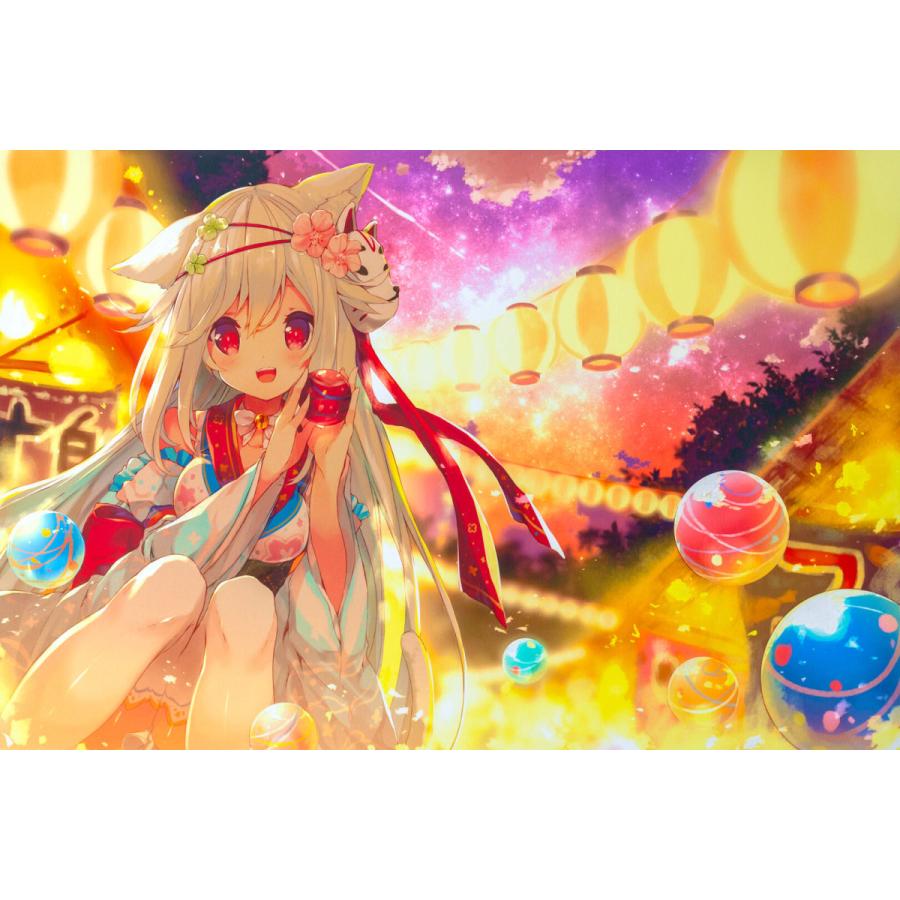 p19『夏のお祭り』ミックスドメディア 版画 本人 鉛筆 サイン25部限定 アールビバン保証書付