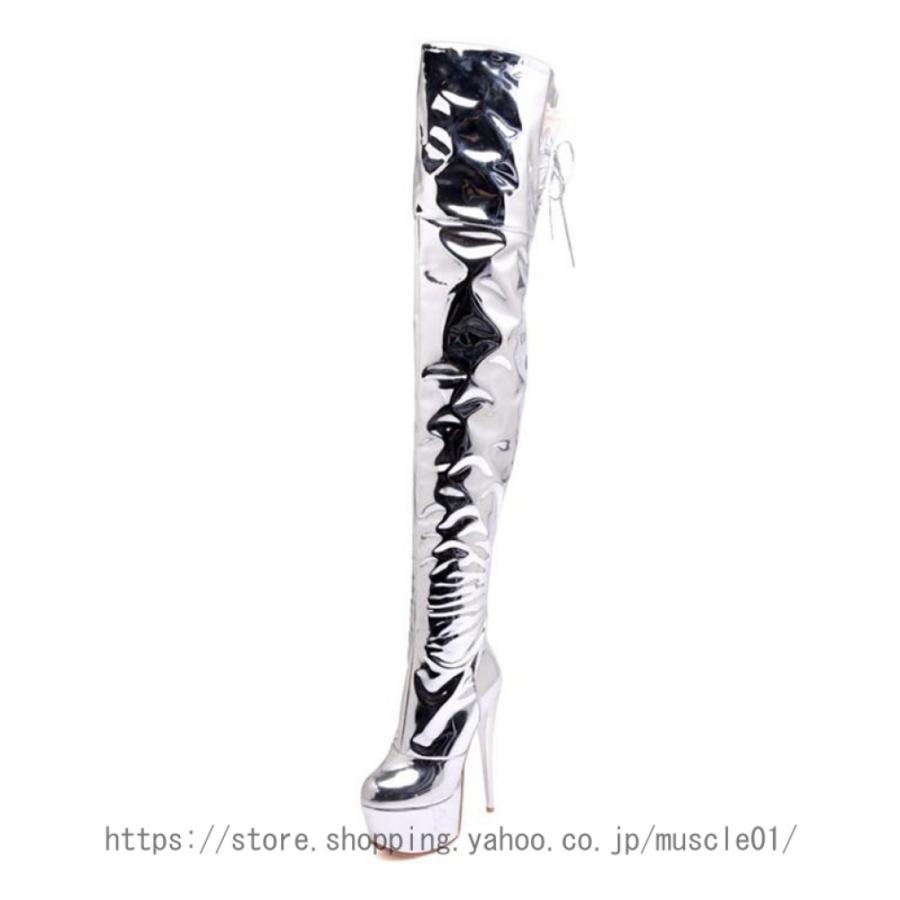 ★【ヒール】16cm 【ストーム】6cm 【履き口】48cm 【筒丈】66cm つま先側も厚底になっているので、見た目よりも歩きやすいです